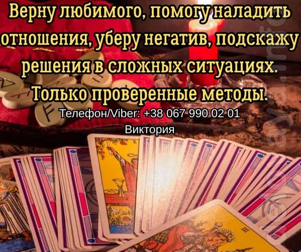 Ищете помощь ясновидящей, экстрасенса, рунолога и таролога? Меня зовут Виктория, и работаю с людьми, помогая менять их судьбу с помощью древних знаний, ритуалов и магии.